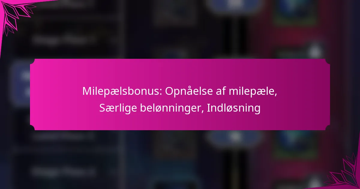 En milepælsbonus er et belønningssystem designet til at anerkende spillere for at nå betydelige præstationer inden for spillet. Disse præstationer kan inkludere at gennemføre niveauer, samle point eller andre bemærkelsesværdige fremskridtsmarkører. Bonusserne kan variere i type og værdi, hvilket gør dem til en væsentlig del af spillerens motivation.