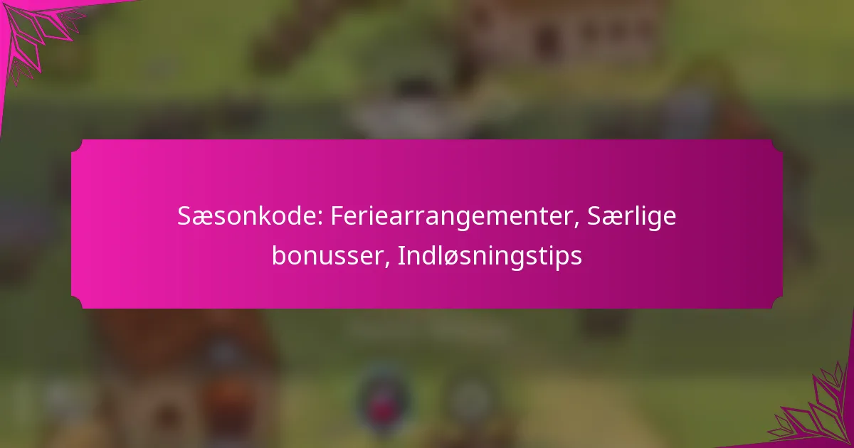 Sæsonkode: Feriearrangementer, Særlige bonusser, Indløsningstips